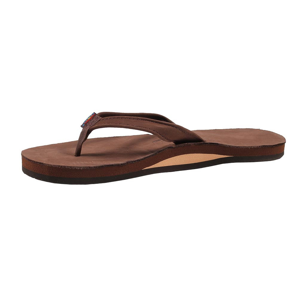 Rainbow Sandals officially began in 1974. They are made to be durable and long lasting as well as comfortable. The Catalina premier leather sandal is made of top grade nubuck leather top sole that is embossed with the Rainbow logo. The strap, also nubuck leather; is double stitched, and the nylon toe piece is secured with a box X stitch, all using bonded nylon thread.
